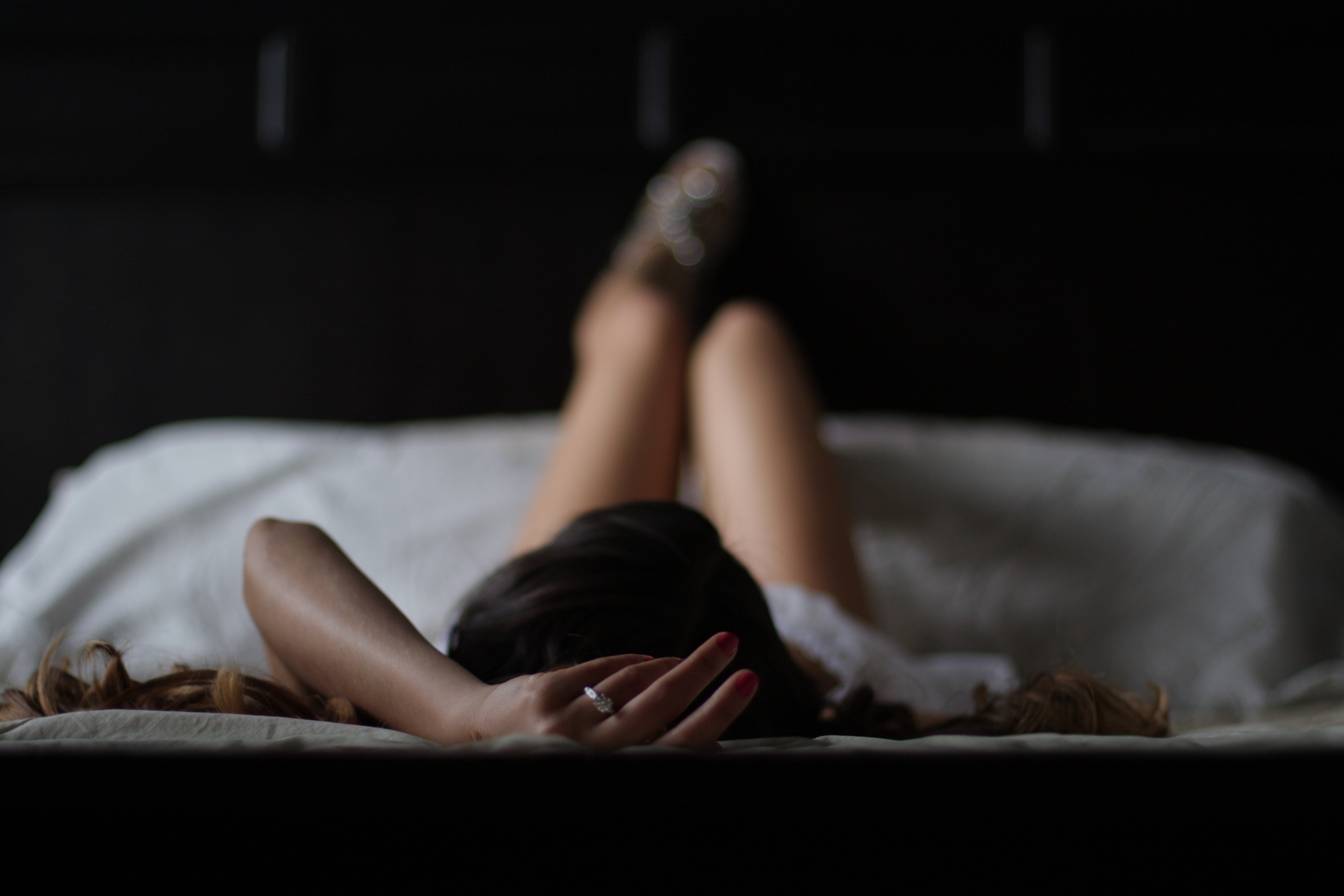 Digital Photography. Glamour/Boudoir shoot. Displays sharp contrasts of dark and light. The overcast day kept everything with muted colors, except for her pink nails. The lighting allowed for the focus to be on her hand and ring.